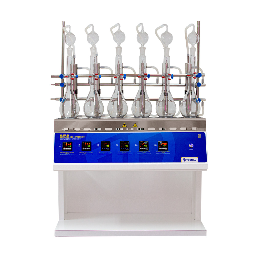 Utilizado para la determinación de nitrógeno/proteína en balones aforados, con condensador tipo Kjeldahl.